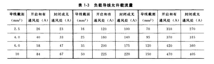 ② 負載導線截面積按表1-3配置。