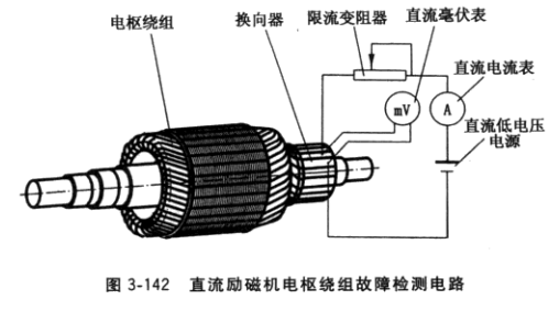 (1)電樞繞組與換向器連接一體情況下,換向器片間短路可用上述的毫伏表法檢測。