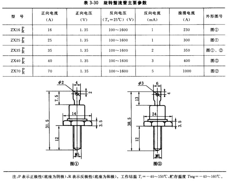 (3)旋轉(zhuǎn)整流管主要參數(shù)見表3-30。