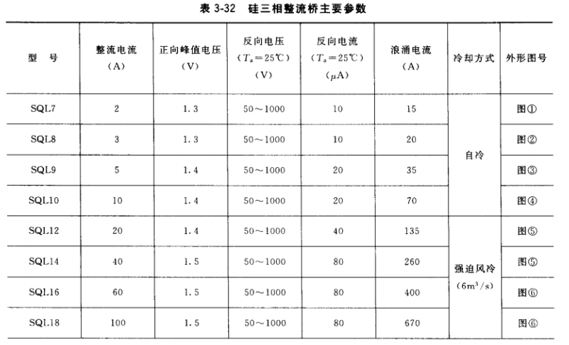 (5)硅三相整流橋主要參數(shù)見表3-32。