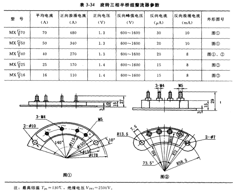 (7)旋轉(zhuǎn)三相半橋組整流器主要參數(shù)見表3-34。