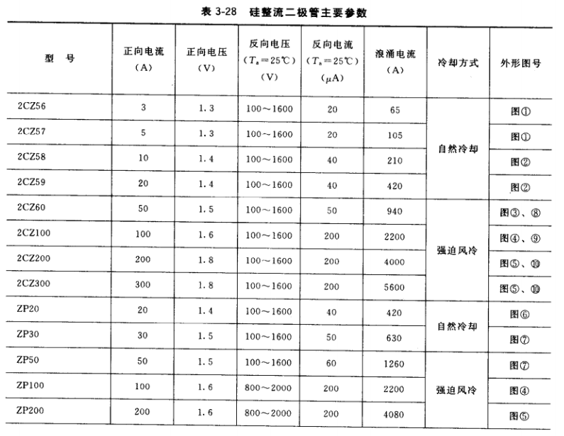 (1)硅整流二極管主要參數(shù)見表3-28。