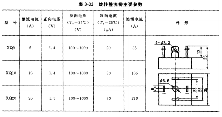(6)旋轉(zhuǎn)整流橋主要參數(shù)見表3-33。