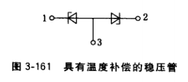 (3)穩(wěn)壓管。普通穩(wěn)壓管的簡易測試方法同整流二極管。具有溫度補(bǔ)償?shù)姆€(wěn)壓管(如 DW7).有3個電極,如圖3-161所示,檢測時可將它分為兩個穩(wěn)壓管,用檢測整流二極管