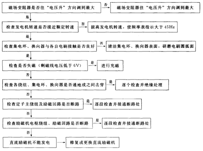 6.直流勵(lì)磁機(jī)勵(lì)磁有刷三相交流發(fā)電機(jī)不能發(fā)電故障排除步驟