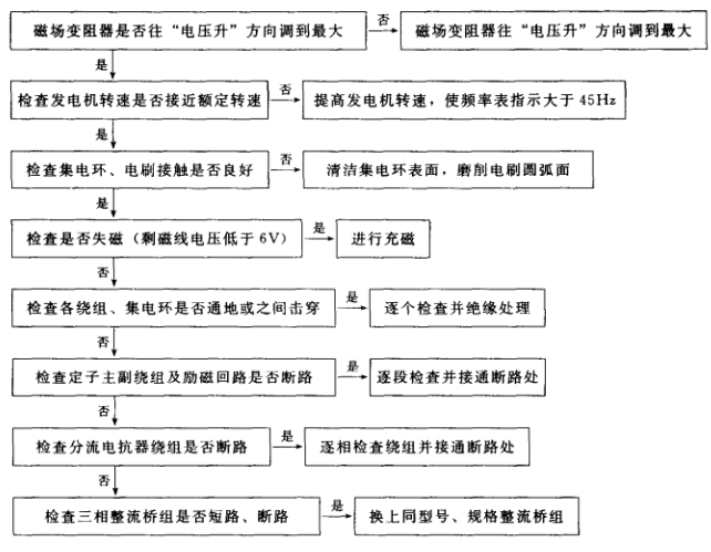 三相交流發(fā)電機(jī)不能發(fā)電故障排除步驟