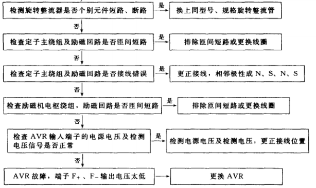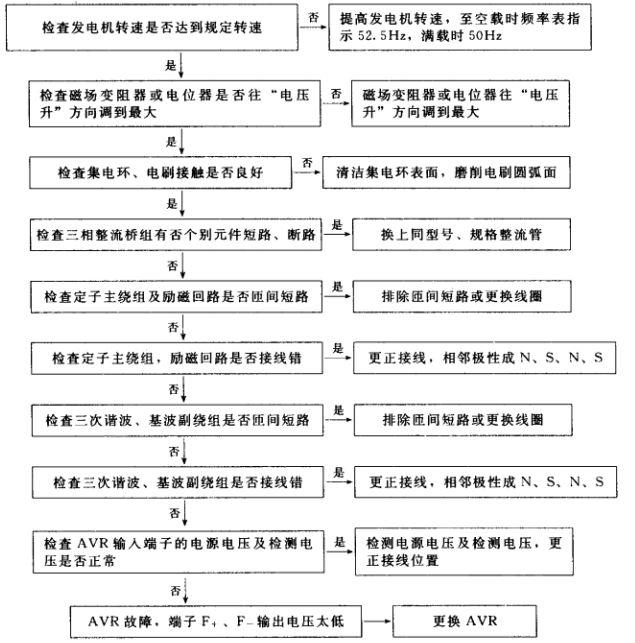 4.三次諧波勵(lì)磁(含可控勵(lì)磁)三相交流發(fā)電機(jī)電壓太低故障排除步驟