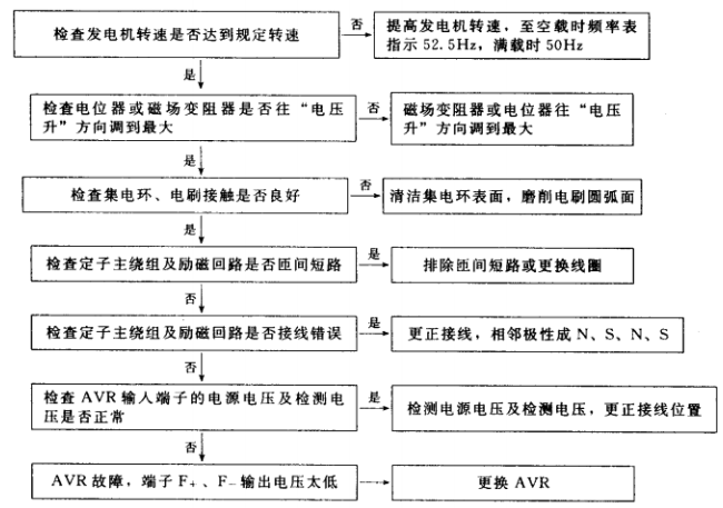 1.有刷三相交流發(fā)電機(jī)電壓太低故障排除步驟
