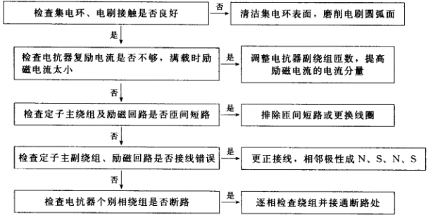 3.電抗移相式、電抗變流復(fù)合式相復(fù)勵(lì)(含分流可控)三相交流發(fā)電機(jī)電壓太低故障排除步驟