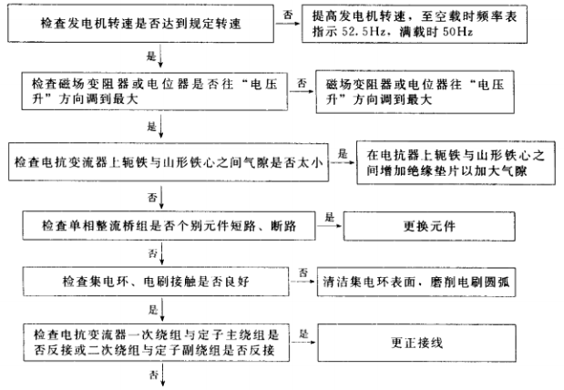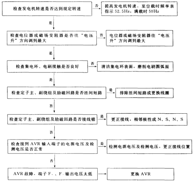 1.有刷單相交流發(fā)電機(含可控勵磁)電壓太低故障排除步驟