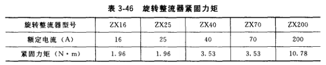 ③緊固旋轉(zhuǎn)整流器螺母時(shí),應(yīng)用扭力扳手,并控制適當(dāng)?shù)牧?見(jiàn)表3-46。