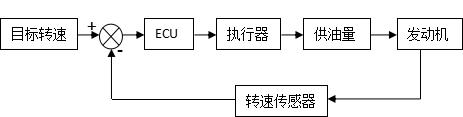 如圖3,操作人員根據(jù)工作意圖,設(shè)定相應(yīng)的開關(guān)及電位器狀態(tài),從而設(shè)定電調(diào)ECU當(dāng)前需要讓系統(tǒng)工作的目標(biāo)轉(zhuǎn)速。ECU通過轉(zhuǎn)速傳感器獲取轉(zhuǎn)速并與當(dāng)前目標(biāo)轉(zhuǎn)速值比較,并與當(dāng)前執(zhí)行器允許的最大允許位置比較,從而確定執(zhí)行器此時應(yīng)該所在的位置并驅(qū)動其到達(dá)。執(zhí)行器位置對應(yīng)的是油泵的供油量,其變化直接影響的是油泵的供油量,而供油量的變化將決定發(fā)動機轉(zhuǎn)速狀態(tài),當(dāng)前這一轉(zhuǎn)速又通過轉(zhuǎn)速傳感器反饋給ECU做及時控制的判斷依據(jù)。