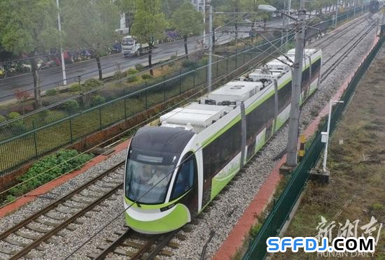 ?。ㄖ熊囍曛揠娏C(jī)車有限公司研制的第三代超級電容有軌電車——“電電混合五模塊儲能式現(xiàn)代有軌電車”)