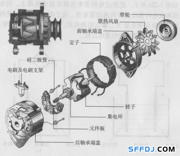 7-轉(zhuǎn)子 8-定子總成 9-前端蓋 10-風(fēng)扇 11-皮帶輪