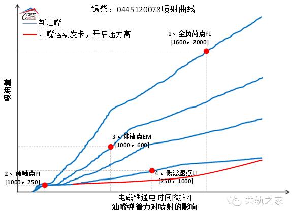 待共軌之家一一與大家分享。共軌之家獨(dú)家原創(chuàng),版權(quán)所有,轉(zhuǎn)載請(qǐng)注明出處!1明明噴油器各個(gè)測(cè)試點(diǎn)都符合規(guī)范,為什么裝上去就是敲缸?對(duì)于噴油器維修過程中墊片調(diào)整的方法,共軌之家早在去年夏天就與大家詳細(xì)分享過,多數(shù)泵友掌握了基本方向。但是,大家都忽視了某些細(xì)節(jié),比如對(duì)墊片調(diào)整幅度的限制,共軌之家給出了建議值。很多泵友都問過:更換閥組件,通過加厚針閥升程墊片厚度的方法,噴油器所有的噴射點(diǎn)油量都符合規(guī)范,但是為什么裝上去就是敲缸呢?相信大家都還記得如下所示的噴油器噴射曲線圖。